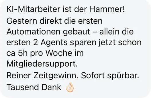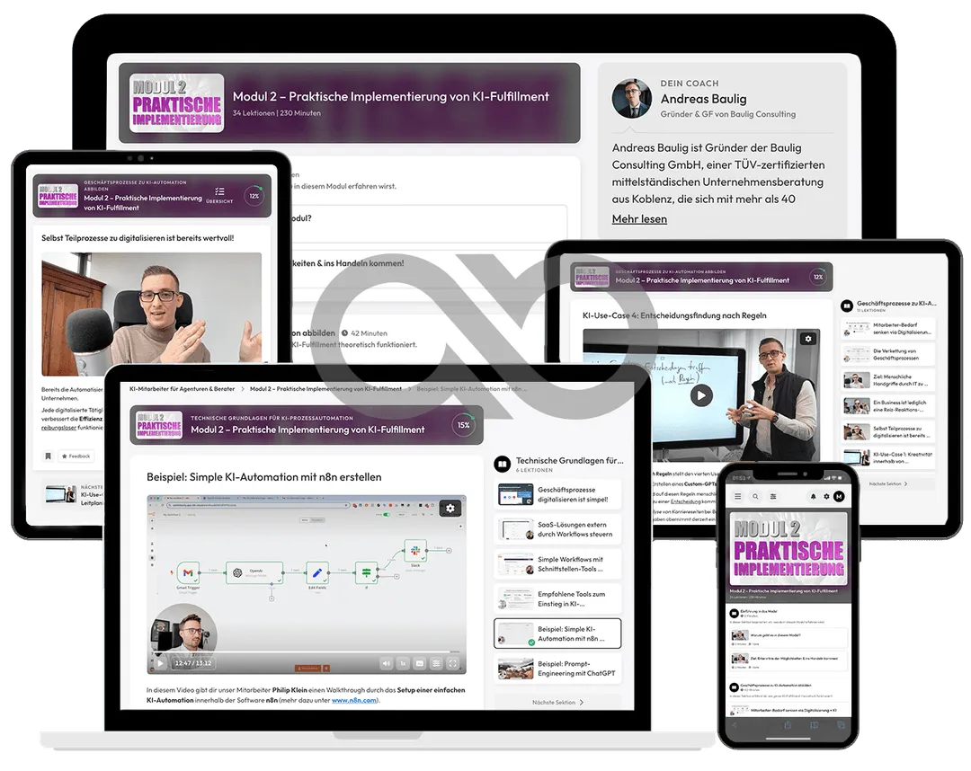 “Das Online-Training KI-Mitarbeiter für Coaches und Berater von Baulig Consulting zeigt auf einfache und praxisnahe Weise, wie KI-Automationen erfolgreich ins eigene Unternehmen integriert werden können.”