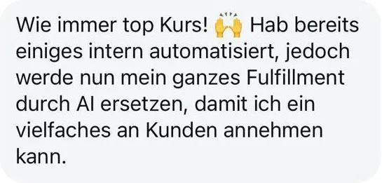 Lerne anhand praktischer Beispiele, wie andere erfolgreiche Unternehmer die KI im Bereich Consulting oder Agentur einsetzen, um ihr Fulfillment zu digitalisieren.